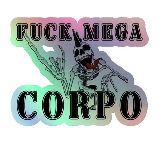 Fuck Mega Corpo Skeleton Holographic Sticker