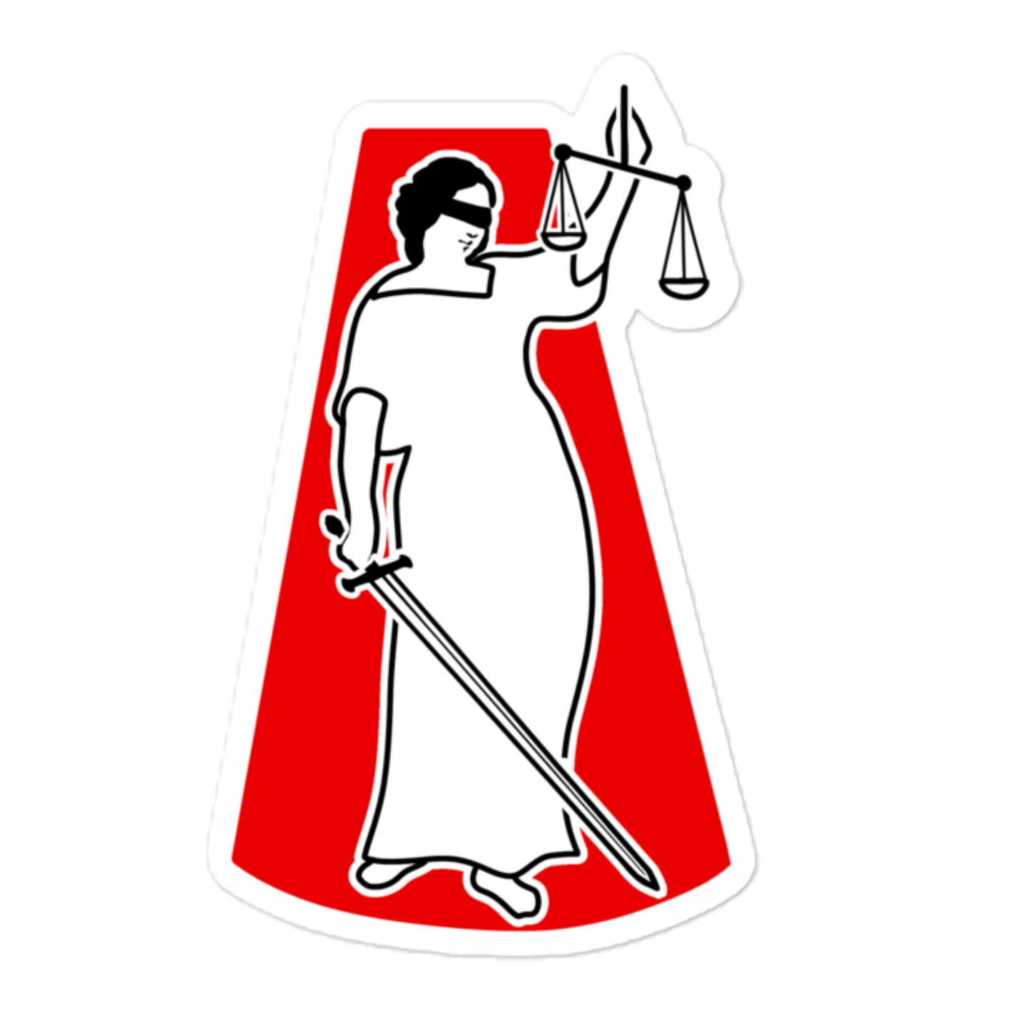 The eye of lady justice is blind, but even a blind man can see how this sticker adds a mighty elegance wherever you may smack it. Okay, if they're blind, maybe not, but if you explain it to them they might be like: "Oh okay, cool."