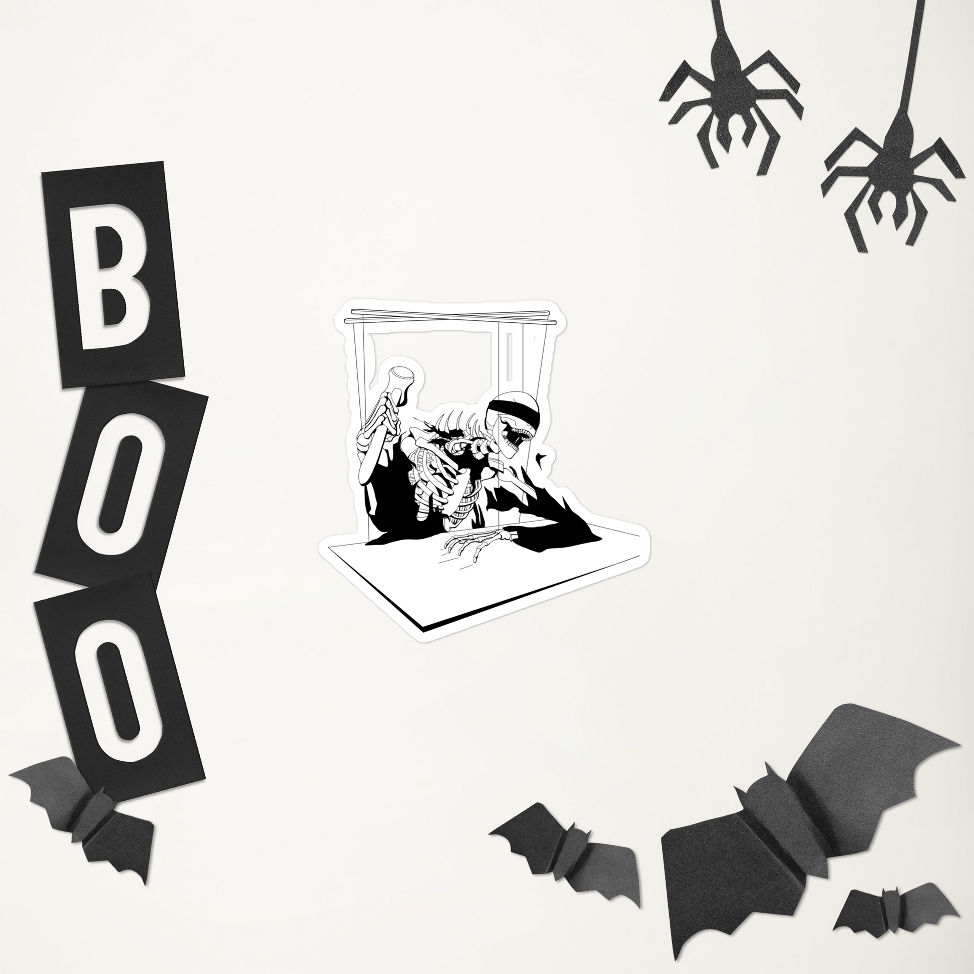 The Death’s Judgement Sticker is a black and white design with a hard-rock and heavy-metal gut punch. The harsh shadows and exaggerated edges are inspired by timeless manga classics, but it’s heart beats to the tune of heavy metal.