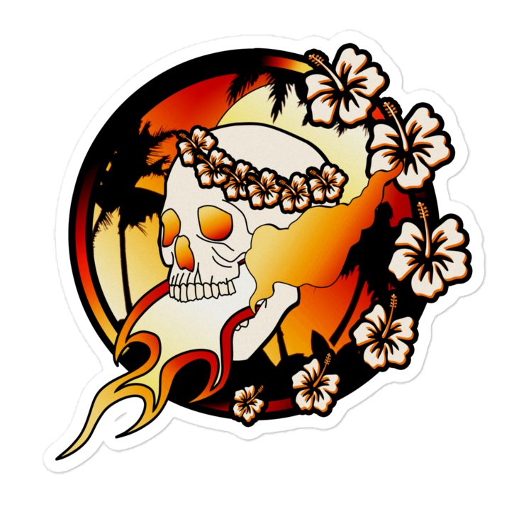 Ashes fall at your feet, as this ancient harbinger of volcanic destruction speaks hell into the land and sky. The Hula Headbanger sticker is perfect for any fans of heavy metal, fiery destruction, and long walks on the beach.