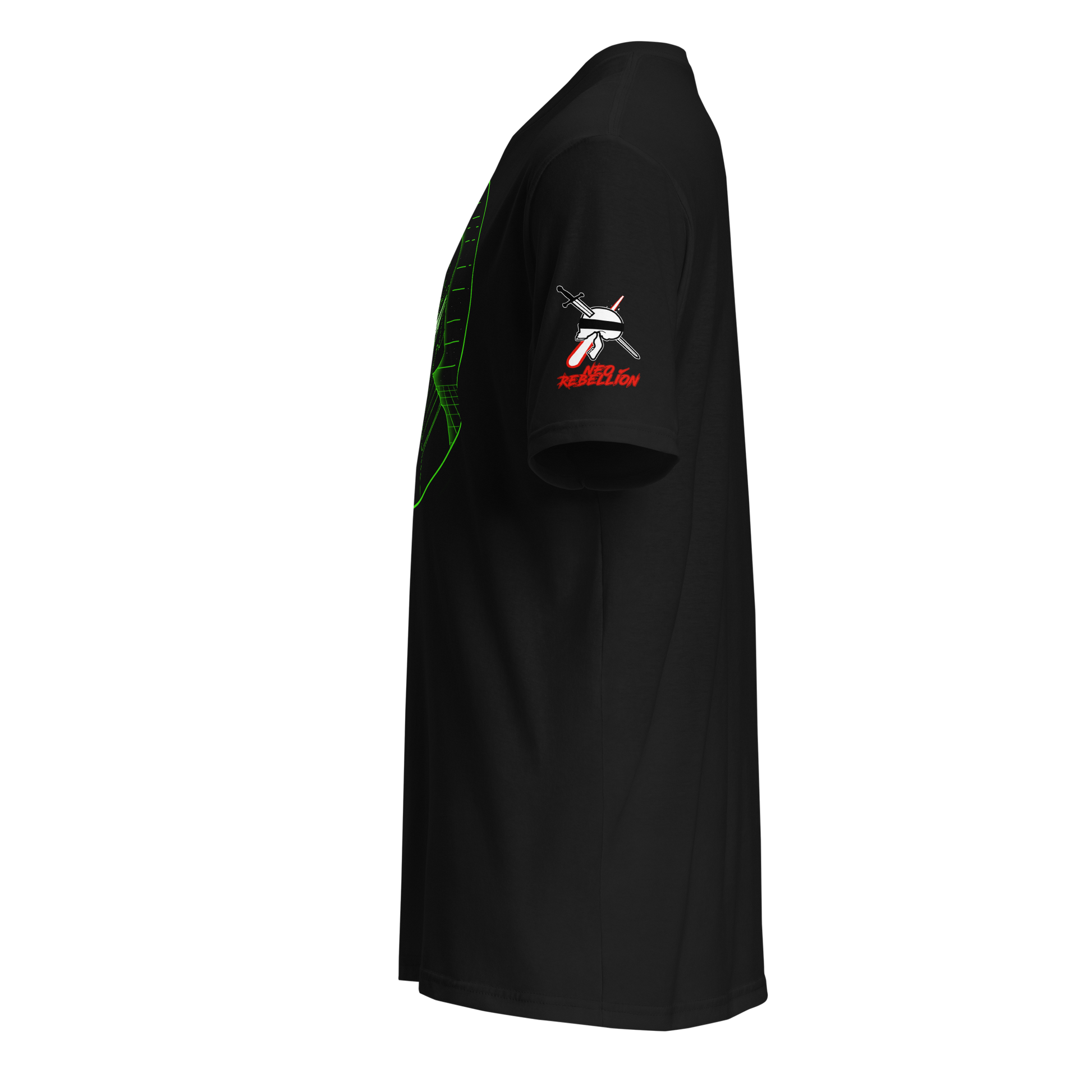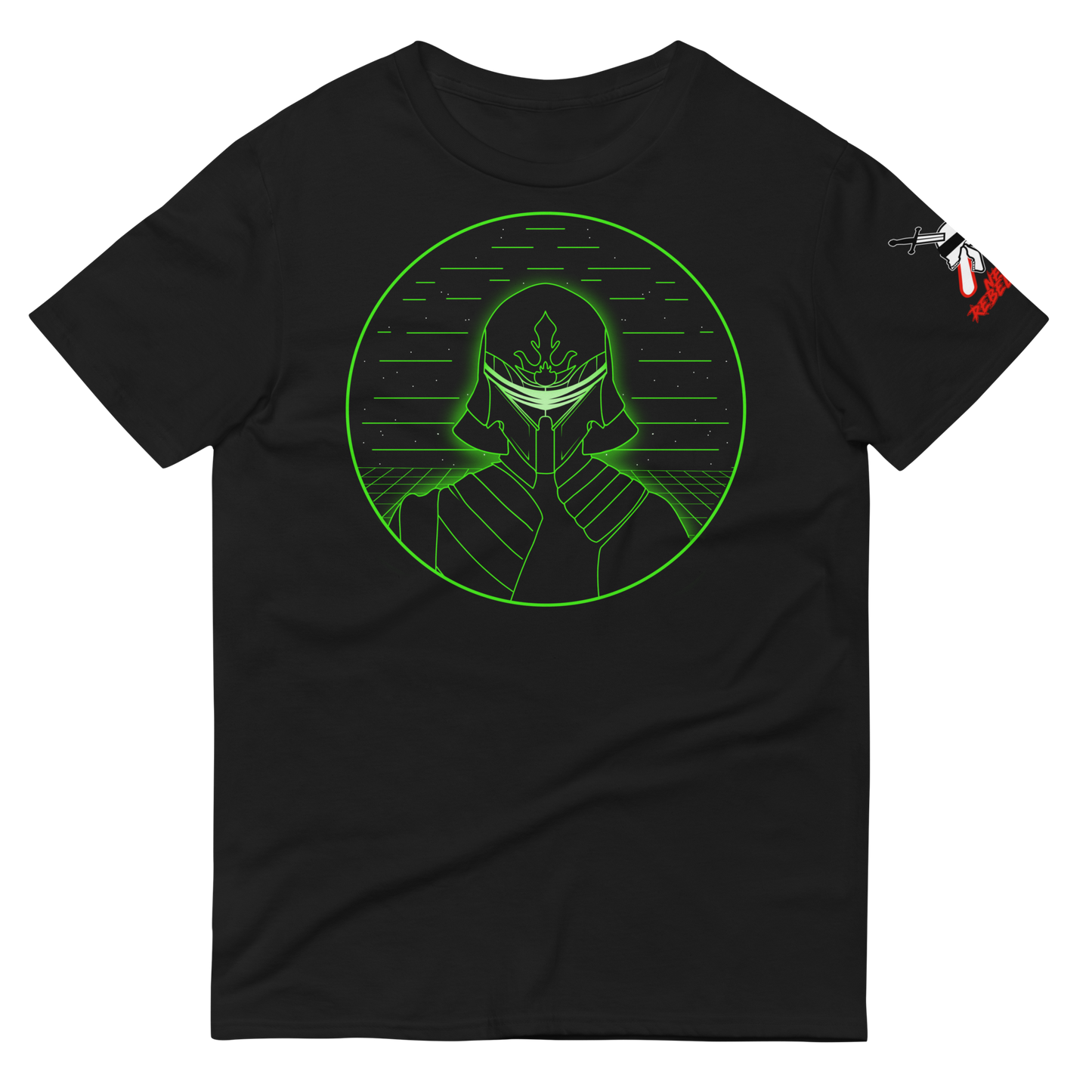 You DO? Okay, first of all, nerd. Second of all, you came to the right PLACE! The Neon Shadowsteel tee is inspired by popular cyberpunk and science fiction media, that I probably can't name for legal reasons, woohoo! Since you're a big nerd like me, show it off, with the sharp and neon glow of... Neon Shadowsteel. [Thunder.mp3]