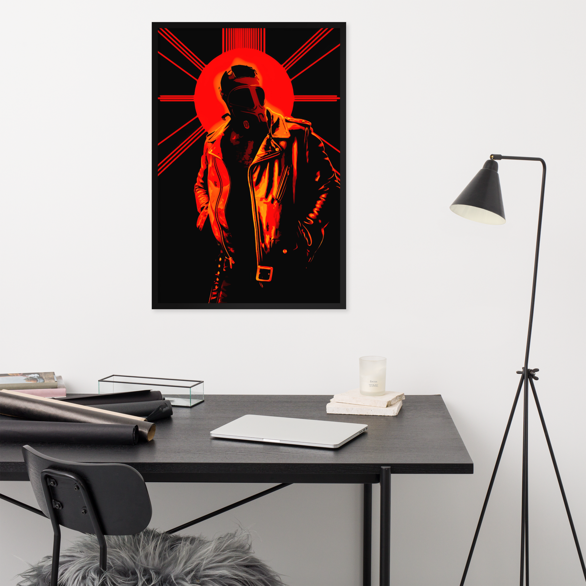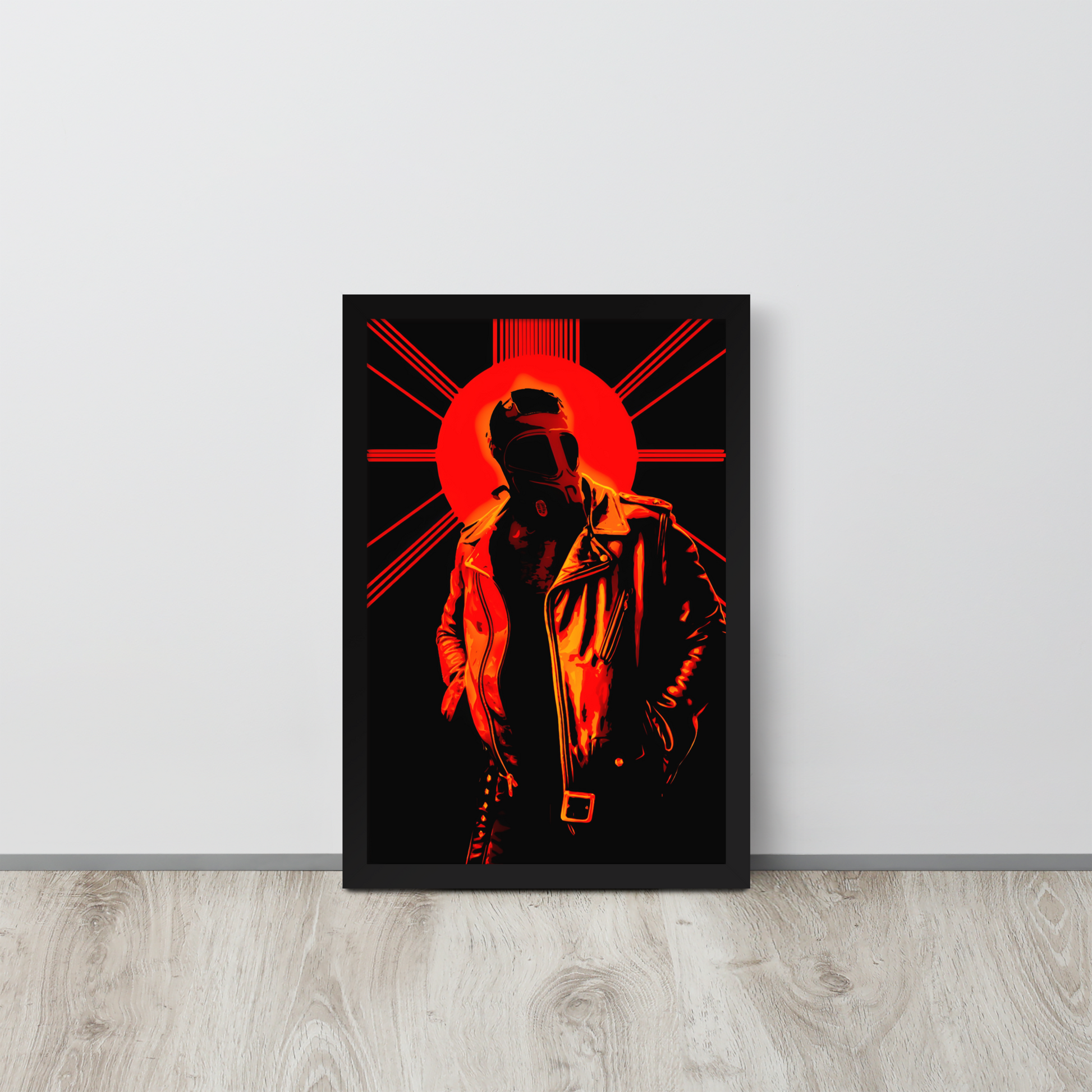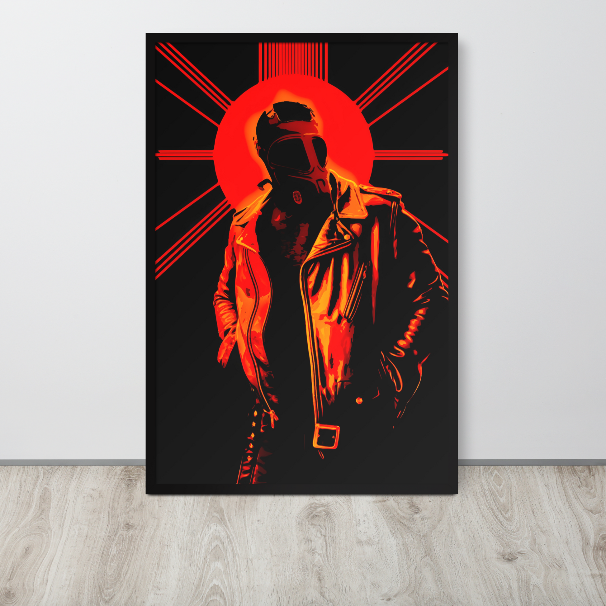 The Stranger 1960 Framed Poster is the second chapter of a 3 part mini-series of posters. Inspired by the anti-establishment movement of the 1960s and 70s, he dawns an XM-28 experimental gas mask, known in reality as “The Mantis Mask”. Though it never saw standard-issue, it makes a great bit of intrigue for this Lovecraftian and mysterious stranger.